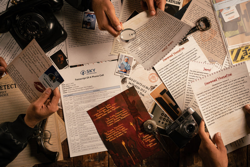 You read aloud. Everyone leans in. Swap theories. Connect the dots. Stuck? A tiny hint nudges you on.